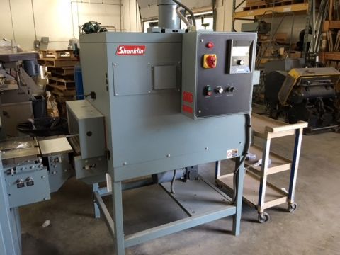Shanklin Continuous Motion Horizontal Shrink Wrapper & Heat Tunnel, Models # F-4A (wrapper) & T7XL (tunnel), S/N's F-0322 (wrapper) & T02107 (tunnel), flight lug infeed with 44" wide film max / rated up to 75 cycles per minute***NORTH*** (Located in South Carolina)