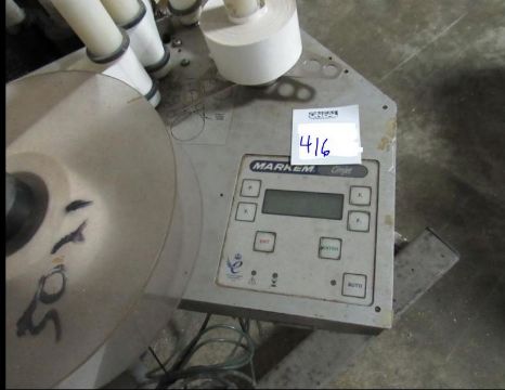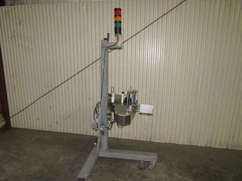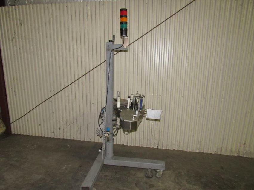 Markem Label Printer /Applicator Box Labeler on Rolling Tripod - Left Hand direction of label application(Rigging and loading fees included in the selling Price - palletizing extra $45)(Located in Iowa)***EUSA***