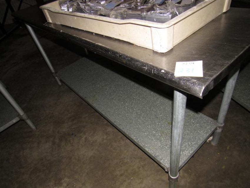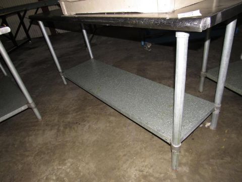 Stainless Steel Table with SS Legs and galvanized steel base shelving. Rounded edges on the length of 60" x 24" and on 32" legs content not included (Rigging and loading fees included in the selling Price - palletizing extra $45)(Located in Iowa)***EUSA***