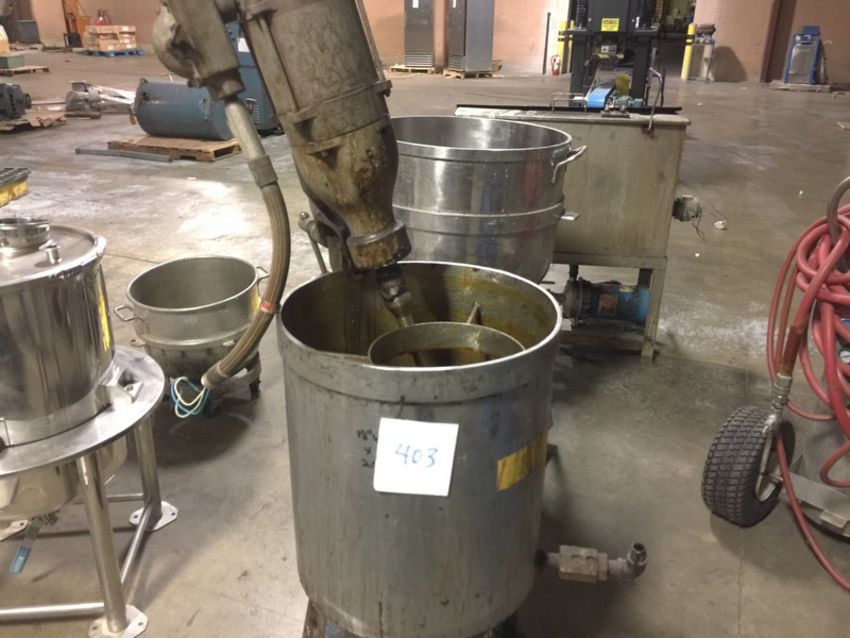 Stainless Steel Mix Tank 18" x 20" about 20-gallon with Lightening type mixer and two propellers (Rigging and loading fees included in the selling Price - palletizing extra $45)(Located in Iowa)***EUSA***