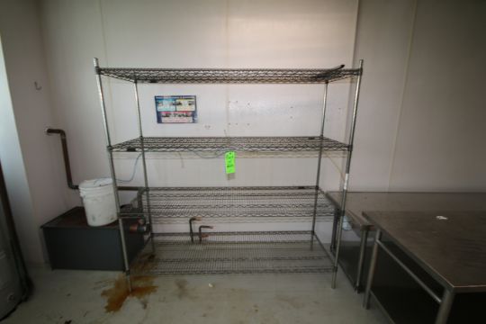 S/S Tables and (1) Wire Rack, Table Dims.: Aprox. 72" L x 32" W x 70 H; and 72" L x 30" W x 27" H