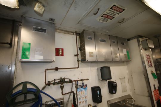 Greenheck 3-Compartment S/S Kitchen Ventilation System, with (5) Ansul R-102 Wet Chemical Fire Suppression System, Overall Hood Dims.: 26' L x 5' W