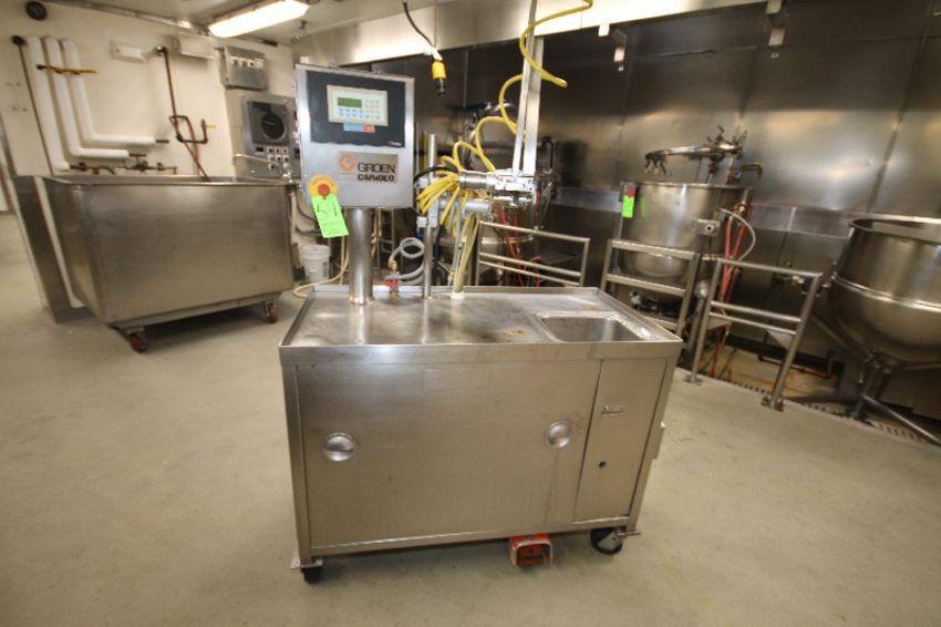 Groen CapKold S/S Mobile Pump/Bag Fill Station, M/N CK/FS-50 P.FILL, S/N 1007, 230 Volts, 60 Hz, 1 Phase, with 1.5 hp Pump, 1750 RPM, Mounted on S/S Mobile Unit with Draining Sink