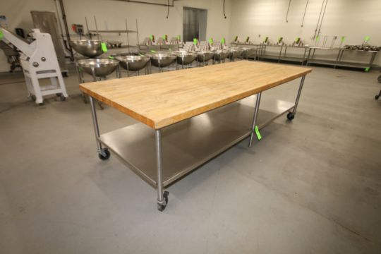 Butcher Block Top Portable Table, with S/S Bottom Shelf, Top Dims.: Aprox. 10' x 4'