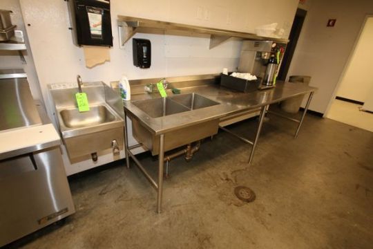 S/S Counter with 2-Compartment S/S Sink, with S/S Table, and Additional S/S Sink, Counter Dims.: Aprox. 120" L x 36" W x 42" H