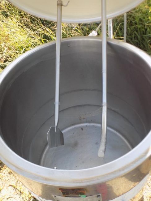 Japy Aprox. 320 L/85 Gal. Jacketed S/S Farm Tank with Hinged Lid, Twin Blade Prop, Motor with Freon Condenser and Control Unit, DIN50 (NOTE: Exterior Defects) ( 50.00 Euro Rigging & Loading Fee. Additional Packaging Fees May Apply)
