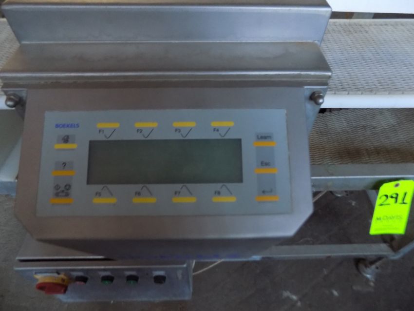 Boekels Aprox. 230 cm L x 30 cm W Metal Detector, S/N PRD-12445-01 with Aprox. 10 cm H x 35 cm W Product Opening and Reject Unit EUR 50.00 Euro Rigging & Loading Fee. Additional Packaging Fees May Apply)