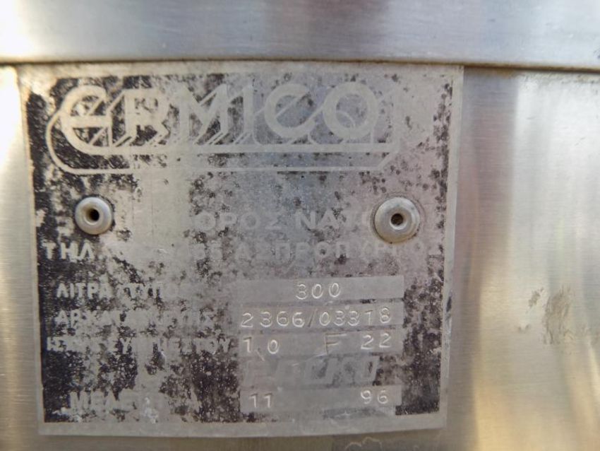 Ermicon (Packo) Aprox. 300L/79 Gal. S/S Jacketed Farm Tank with Hinged Lid, Twin Blade Prop, Motor with Freon Condenser and Control Unit, DIN 40 (NOTE: Missing Test Cap) ( 50.00 Euro Rigging & Loading Fee. Additional Packaging Fees May Apply)