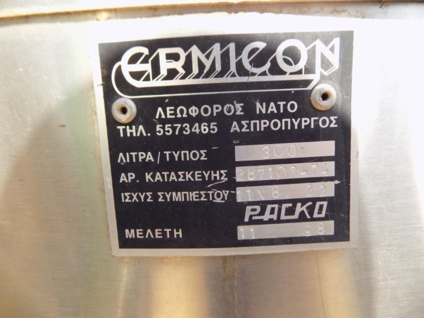 Ermicon (Packo) Aprox. 300L/79 Gal. S/S Jacketed Farm Tank with Hinged Lid, Twin Blade Prop, Motor with Freon Condenser and Control Unit, DIN 40 (NOTE: Missing Test Cap) ( 50.00 Euro Rigging & Loading Fee. Additional Packaging Fees May Apply)