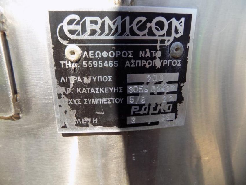 Ermicon (Packo) Aprox. 200L/52 Gal. S/S Jacketed Farm Tank with Hingd Lid, Twin Blade Prop, Motor with Freon Condenser and Control Unit, DIN 40 ( 50.00 Euro Rigging & Loading Fee. Additional Packaging Fees May Apply)