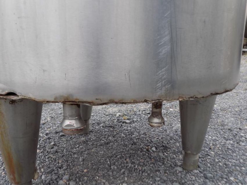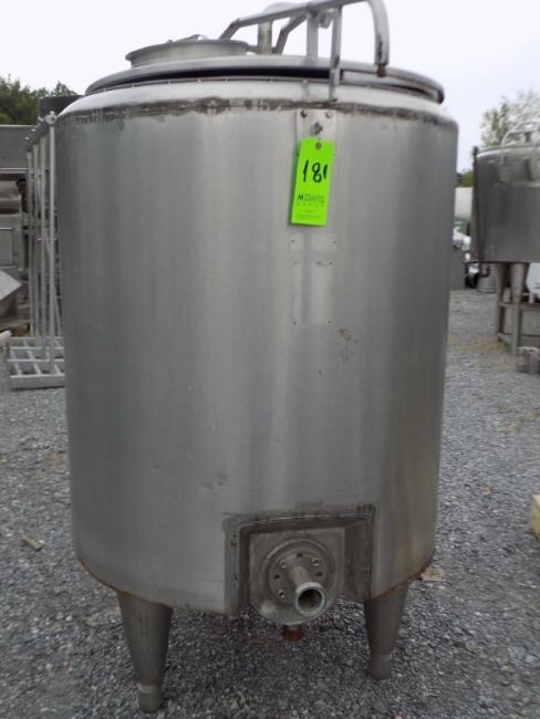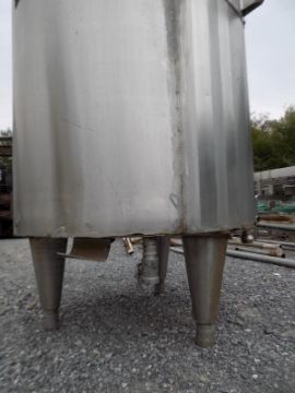 Aprox. 1200 L/317 Gal. Dome-Top Vertical Jacketed S/S Tank, with Connections for Hot Water Between Jacket and Manhole Cap (NOTE: Jacket Damaged on Bottom and Rubber for Cover Damaged) EUR 100.00 Euro Rigging & Loading Fee. Additional Packaging Fees May Apply)