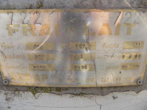 fRAI LAIT 820L , Jacketed Farm Tank , Twin Blade Prop ,Motor With Freon Condenser and Control Unit,Hinged Lid Missing ,DIN 50