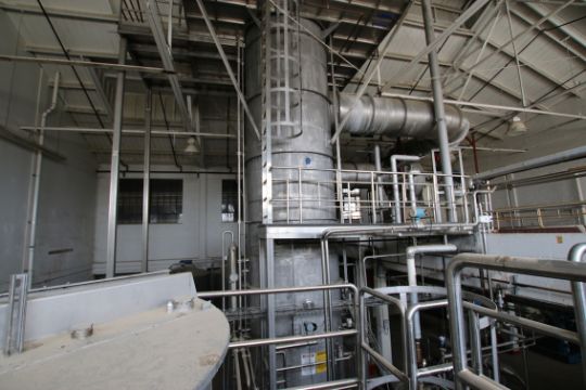 (3) NICE Mueller 15,000 Gallon S/S Refrigerated Silos with Vertical Agitation Full Side Cold Wall Jacket; 2007 Acqua Int. Falling Film “Cyclovap Tech” S/S MVR Evaporator, Model CYCLOVAP, (Designed for 26,000 lbs / 12,056 kg per hr. on Whey – 53 GPM 7-8x Concentration) Technology, Aprox. 86 ft Dia. Main Chamber (Calandria) with 675 2” & 8” Tubes x Aprox. 36 ft. H x 8 ft. Wide, with Pillar 277 hp / 177.3 kw Turbo Compressor / Turbo Fan, Type 40778 KKXGAE 80560, with VFD Controls, Includes S/S Duct Work, (7) Fristam & Other Centrifugal Pumps up to 25hp; 4-Tank Walker Evaporator CIP System Includes (2) Walker 1,600 Gallon Dome Top / Cone Bottom Tanks, (2) 1,600 Gallon Tanks, (3) Fristam & Additional Pumps, Rosemont Controls, Related Valves / Piping, S/S Operator Platform; 1,681 lb Ammonia Refrigeration SystemIncludes: (3) Vilter 2 – Cylinder Ammonia Recip Compressors, #1 30 hp, #2 40 hp, #3 60 hp, all with Oil Separators, 2008 Industrial Service & Fabricators (ISF) 134″ H x 41″ W Vertical Ammonia Recirculation System, Includes (2) 2 hp Cornell Pumps & Related Valves, 2008 Industrial Service & Fabricators (ISF) 140″ H x 32″ W Vertical Ammonia Receiver, Includes rack with Small Alfa Laval Press & pump, M&M Evap Condenser (on Roof) with Ecolab Chemical Treatment System Rack, (10+) Fristam & Tri-Clover Centrifugal Pumps 5 HP – 15 HP; CE Howard 3,000 Gal, Jacketed Rectangular SS Tank with SS Front, SN 7345-2, with Tank Valve; Kobelco 75 hp Screw AC, Model KNW 0-C/L, SN 94E0411, Water Cooled; (2) Vacuum Pumps, (1) Nash Mfg; (2) Micromotion Flow Meters (Installed Above Evaporator); Heat Exchanger Skid Equipped with Therma Line Plate Frame with Approx. (56) Plates, Model T28CH, Secondary Therma Line Heat Exchanger, (3) Online Filters, Wright Flow Centrifugal Pump; Recirculation Skid Equipped with (4) Centrifugal Pumps, Including (3) AMCO 25 HP & Wright Flow Pumps, Micromotion Online Flow Meter with Digital Read-Out; 7 ft x 5 ft Modular Freezer with Freon Pkg; (20) Sect @ 2 Deep @ 4 – High Pallet Racking with Aprox 24 ft H Uprights, 4″ W; (11) Sect Standard Racking, Bolt Type, 4 High, Aprox 24 ft H, 4″ W Uprights, 8 ft W Sections, Includes Cage Beds, (2) Additional Uprights & (16) Cross Braces & Cage Beds; (28) Interlake Pallet Racking, Clip Type, 3 – 4 High, 16 ft H Uprights, 8 ft to 12 ft L Sections, 3″ W Uprights, Rated for 2,000 lbs; Albany Rapid Powered Door 8 ft W x 146″ H Opening; Cooler Vault #1: (2) Krack 2 Fan Blower – Newer, (8) Frigid Coil 3 Fan Blowers, (2) 3 Fan Blowers, (1) 2 Fan Blower Racking (40) Sect Interlake Clip Type Pallet Racking, 8 ft to 12 ft L, Most 3 High, 16 ft H Uprights, 3″ W, Rated for 2,000 lbs; Cooler Vault #2 – Dock Area (4) Frick 6 Fan Blowers – Later Model, (Installed Aprox 30 ft Up), (54) Sect Pallet Racking, Bolt Type , 4″ W Uprights, 8 ft L, Aprox 24 ft Uprights, with Cage Beds; LARGE VOLUME OF ADDITIONAL ASSETS!
