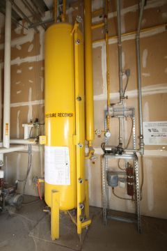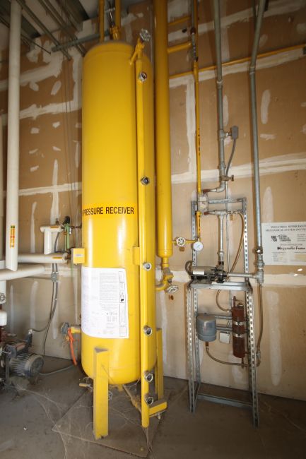 2008 Industrial Service & Fabricators (ISF) 140" H x 32" W Vertical Ammonia Receiver, SN 08-7624, Max Working PSIG 250 @ 200 Degrees F, BN 7286, Includes Rack with Small Alfa Laval Press & Pump