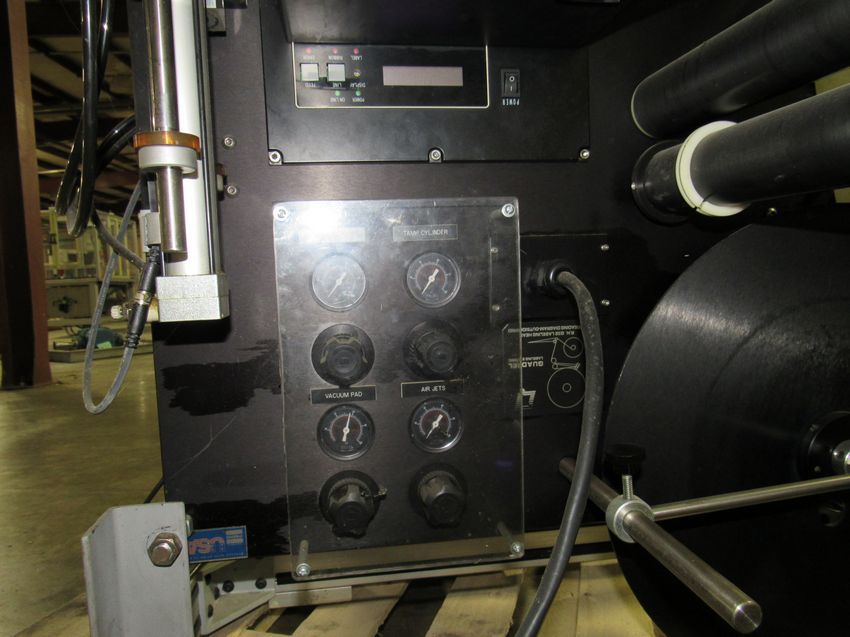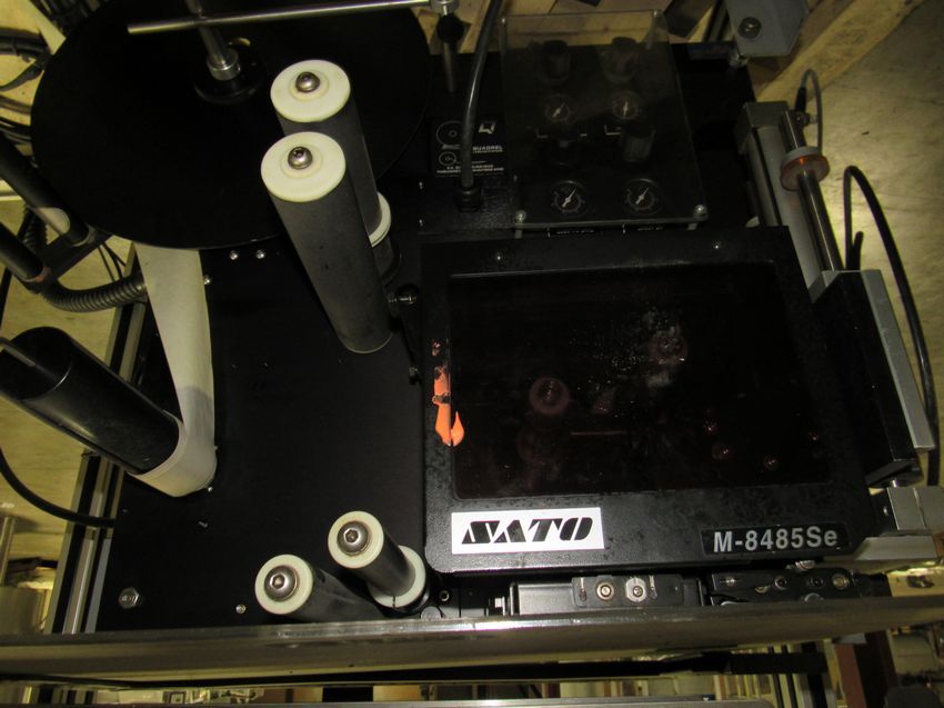 Quadrel Labeling System with Sato Label Printer - was used for printing and applying round labels to the bottom of small jars. Quadrel Model: Moduline, Serial No. 51698-01-02-03, and Sato Model M-8485Se label printer. Free removal and loading - optional palletizing $75.00. Located in Iowa
