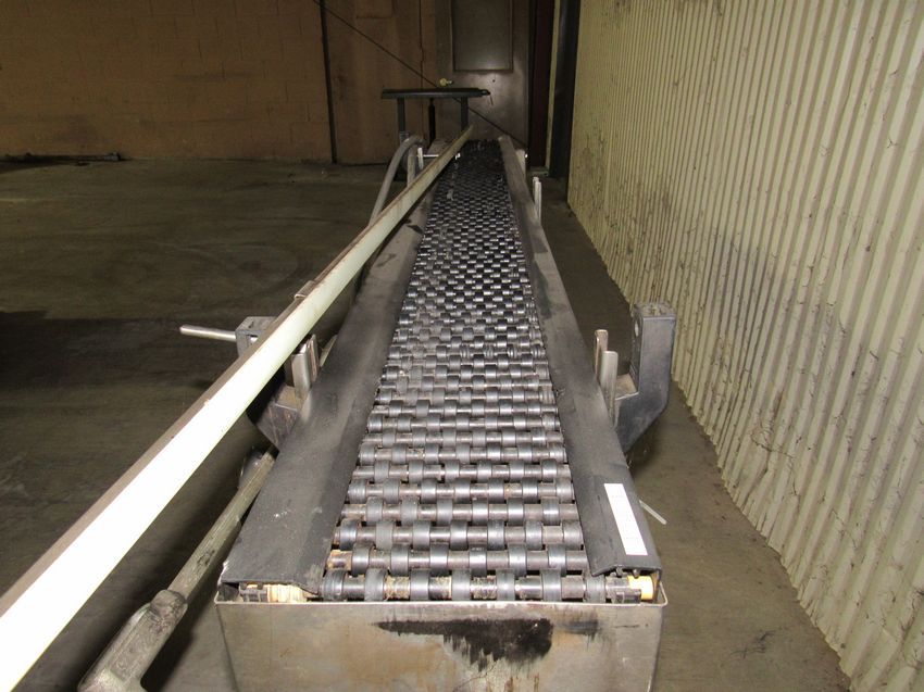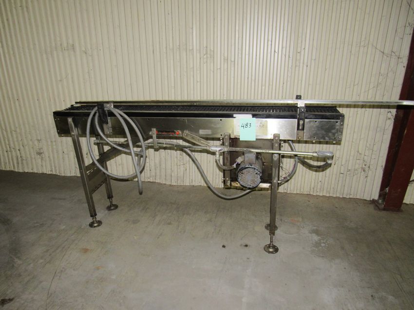 Stainless Steel Shuttleworth Systems Conveyor, 80 in. Length x 6 in. Wide, zero pressure roller belting. (Rigging and loading fees included in the selling price - optional Palletizing $75.00) Located in Iowa