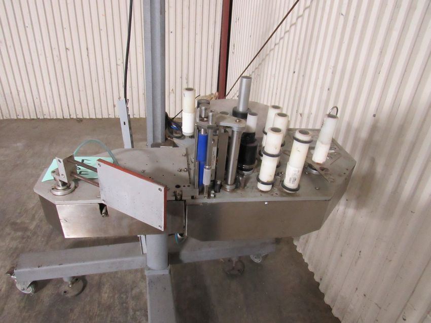 Markem Label Printer /Applicator Box Labeler on Rolling Tripot Left Hand direction (Rigging and loading fees included in the selling Price - palletizing extra $45) Located in Iowa