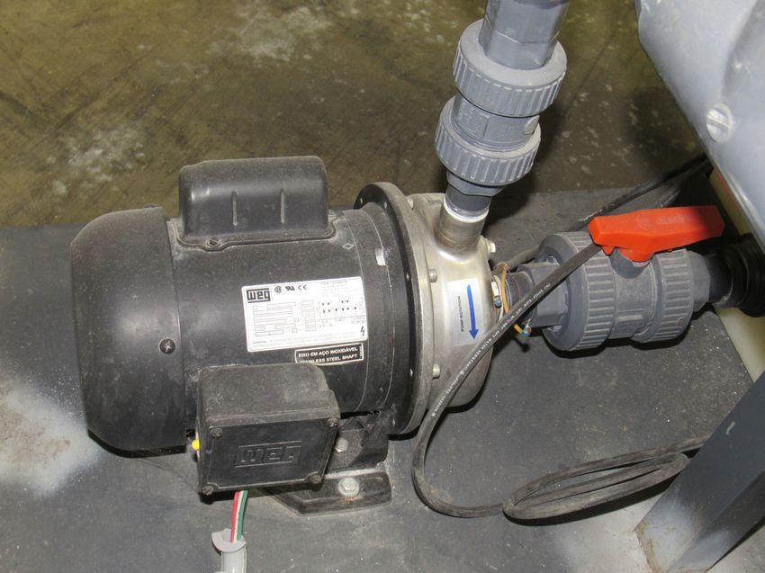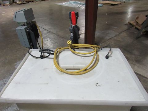 ChemTainer Dual Pumps Chemical Treatment tank with two identical stainless steel Ebara Dynamic Pumps model no. CDU70/17T1C, Serial No. C33229/1/1, 1HP, 3490 RPM, 115/208-230Volts, 10 40/5 00-5 20 Amps, 38" x 38" metal base, plastic reservoir with two floor switches for each pump and electrical control system. Free removal and loading. Located in Iowa