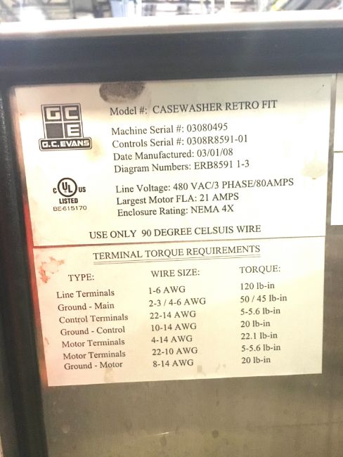 GC Evans Stainless Steel Plastic Shell Washer Serial: 03080495 Year: 2008 Stainless Steel Construction, Includes Air Knife Blow-Off, Allen Bradley Micrologix 1500 PLC with PowerFlex 4 VFD Drive, Last running Plastic Sheels of 20 oz PET and 2L PET(Located in North Carolina) ***FBEV***