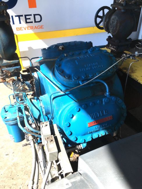 Vilter 458XL 8 Cylinder Ammonia Compressor with Soft Start Controls Model: A10K 458 XLB Serial: 63167TR Last running at soft drink facility, removed due to closure of plant, 150 HP motor, ABB Model PST soft start controls(Located in North Carolina) ***FBEV***