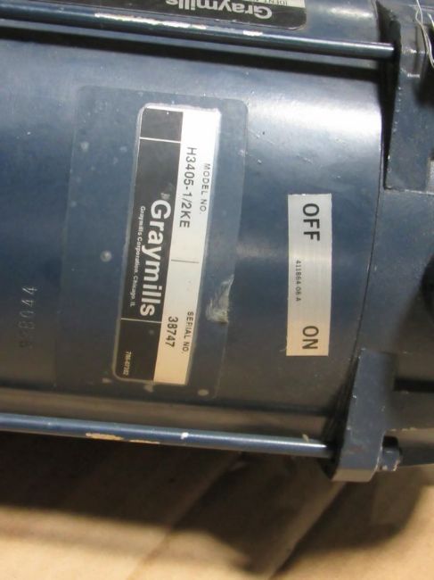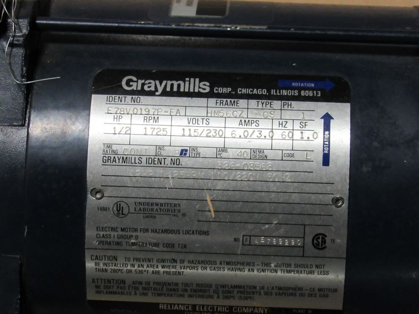 Graymill Pump - 1.2HP, 1725 RPM, Model H3405-1/2KE, Serial #38747, Gear drive E78V0197P-EA, 115/230 Volts, 6.0/3.0 AMPS. Free removal and loading -Optional Palletizing Fee $45.00 Located in Iowa