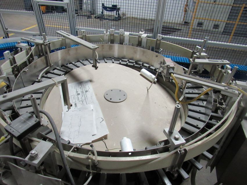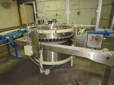 Homppman Model bottle scrambler bottle feeder. Removal and loading free. Optional palletizing $145.00. Located in Iowa
