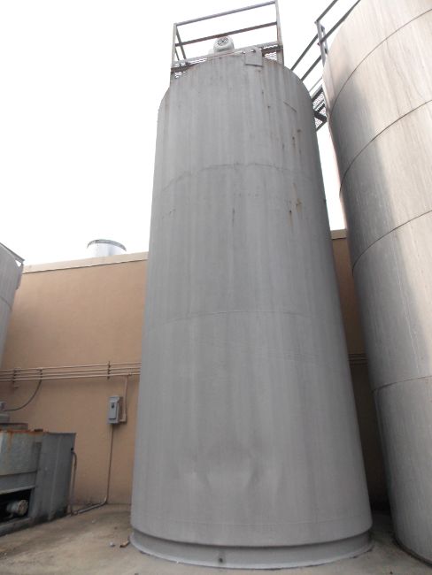 Dairy Craft 6,000 Gallon Stainless Vertical Silo with Agitator Serial: 77J3387 Stainless Steel Construction, Double Insulated and Refrigerated, Top Mounted Agitator, Side Alcove with Manhole, Last used in a Beverage Plant, Last ran Orange Juice Concentrate, Refrigeration only held temperature – did not chill the product(Located in North Carolina) ***FBEV***