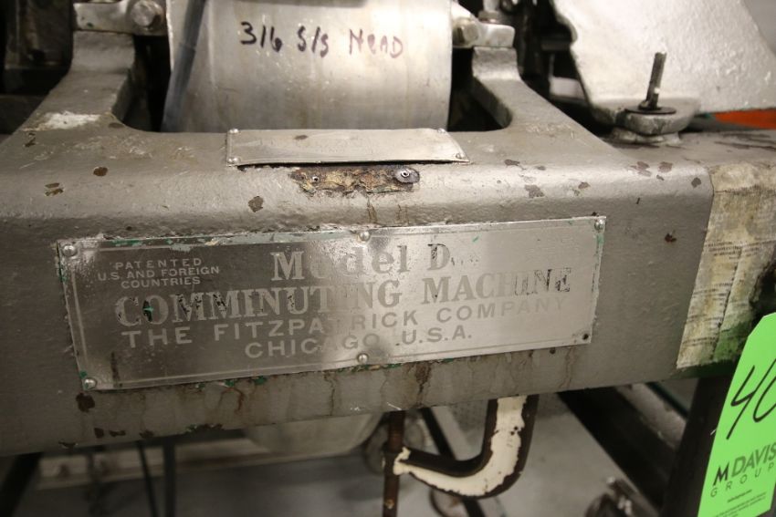 Fitzpatrick Comminuting Fitzmill, Model D with 316 S/S Head, 6″ x 11″ Blade Area, and Square D Size 2 Starter, 460 V, 3 Phase with 12″ x 12″ S/S Auger Feed Hopper(Located in Pittsburgh)***MRY***