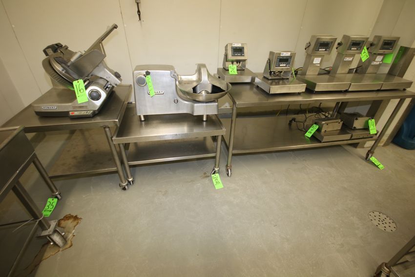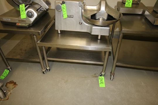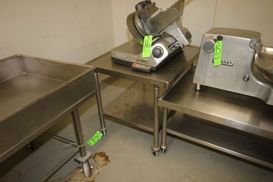 (3) Pcs. - Assorted S/S Portable Tables, (1) Aprox. 72" L x 36" W x 34" H, (1) Aprox. 36" L x 30" W x 24-1/2" H and (1) 36" L x 30" W x 30-1/2" H, All with Bottom Shelves ***LOADING FEE:  $50.00 (LOADED AS IS; OTHER REQUESTS MAY BE ADDITIONAL CHARGE)***