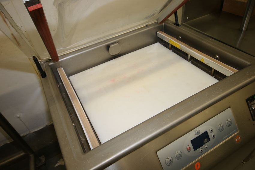 2011 Minipack-Torre Single Chamber Vacuum Packager, Model MV50XP with Chamber Dimensions Aprox. 21" L x 18" W, 208 V with Integral Vacuum Pump on Casters ***LOADING FEE:  $125.00 (LOADED AS IS; OTHER REQUESTS MAY BE ADDITIONAL CHARGE)***
