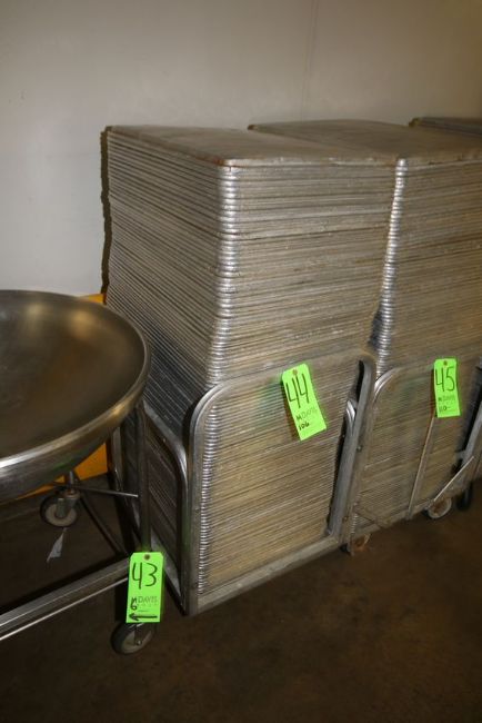 { Choice of lots: 44 (P) } } } } } } } } } } } } } } } } } S/S Pans - Aprox. 24-1/2"" L x 17"" W x 1"" Deep with Portable Cart ***LOADING FEE:  $25.00 (LOADED AS IS; OTHER REQUESTS MAY BE ADDITIONAL CHARGE)***