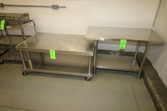 { Group of lots: 234, 235 (P) } S/S Tables with S/S Bottom Shelves - (1) Portable on Casters - Dimensions Aprox. 45" x Aprox. 24" x 29-1/2" and 49" x 30" x 23"