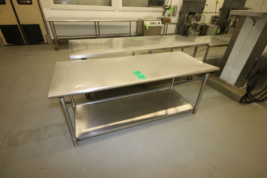 Assorted S/S Tables - (1) with Edlund Can Opener - Aprox. 72" L x 36" W x 29" H, (1) Aprox. 72" L x 30" W x 30" H and (1) Aprox. 60" L x 34" W x 34" H ***LOADING FEE:  $50.00 (LOADED AS IS; OTHER REQUESTS MAY BE ADDITIONAL CHARGE)***