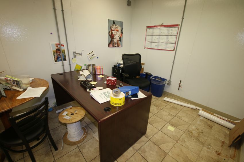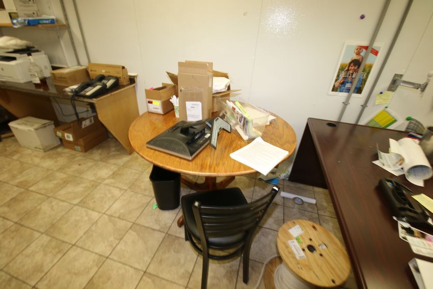 Contents of Office incudes: Desk, (4) Chairs, Spool of Wire, Round Table, 2-Door Husky Cabinet, Portable Wire Shelving with Contents including (2) Waste Bins, Paper Towel Bins, (2) S/S Coat Racks and (2) 2-Door Cabinets (NOTE: Does Not Include Security Camera Equipment or Other Pieces That Belong to Whole Foods) ***LOADING FEE:  $25.00 (LOADED AS IS; OTHER REQUESTS MAY BE ADDITIONAL CHARGE)***