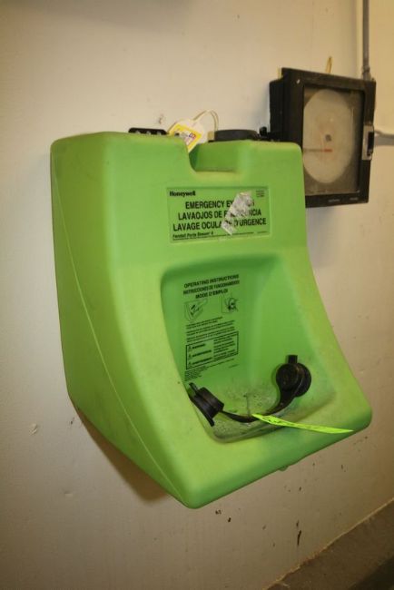 (6) Pc. S/S Sink with Knee Controls, (2) Wall Mounted Coat Racks, Honeywell Emergency Eyewash Station, Supply Sanitation System Foamer and Wall Mounted Mop Station ***LOADING FEE:  $50.00 (LOADED AS IS; OTHER REQUESTS MAY BE ADDITIONAL CHARGE)***