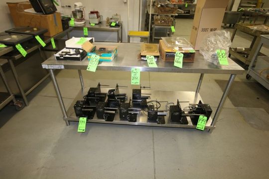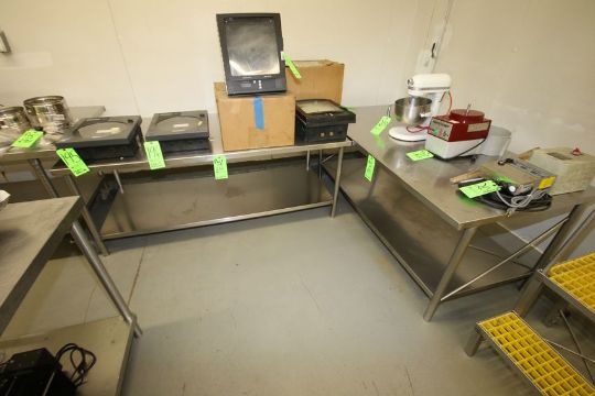 S/S Tables with S/S Bottom Shelves, Dimensions Aprox. 72" x 36" X 33"; Aprox. 72" x 36" x 29"; Aprox. 72" x 36" x 29" and Aprox. 72" x 30" x 34"