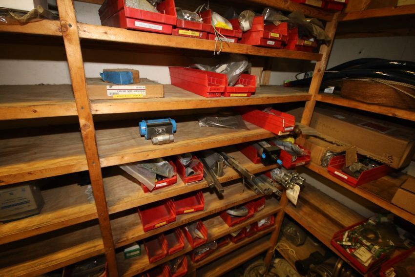 Remaining Contents of Parts Shelves includes: Motors and Drives, Threaded Fittings, Bearings, Cylinders, Tubing and Casters (NOTE: Does Not include Refrigeration or Support Parts/Components or Water Softening System) ***LOADING FEE:  $50.00 (LOADED AS IS; OTHER REQUESTS MAY BE ADDITIONAL CHARGE)***