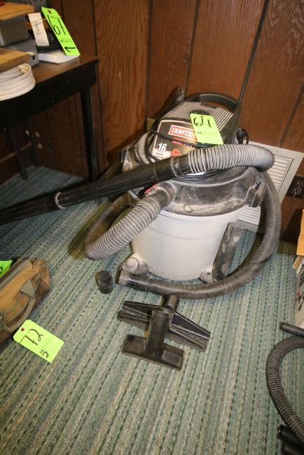 { Group of lots: 64, 65, 66 } } Craftsman 16 Gal. Wet/Dry Shop Vacuum, 6 hp Motor, with Attachments