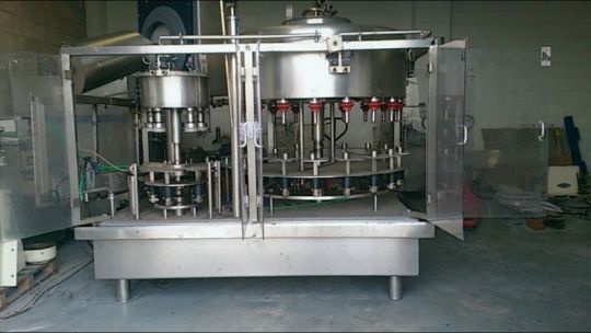 Filmatic 18-Valve Mono-Block Filler with 6-Head Rotary Cap Snap Capper, Cap Sorter, Utilizes 38 mm Cap Size, Safety Switches, CIP Ring, Product Valve Inlet, Fully Guarded Cabinet, Set-Up with 1 Litre Change Parts