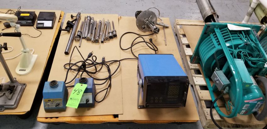 (2) Vortex Genie Mixers, S/N G1571 and S/N G21591; Moisture Motions Micro-Quad 9000 Quadra Beam Moisture System, S/N 857614; Carter High Shear Agitator, Model 1178, S/N 403020462R and Assorted Mixing Heads