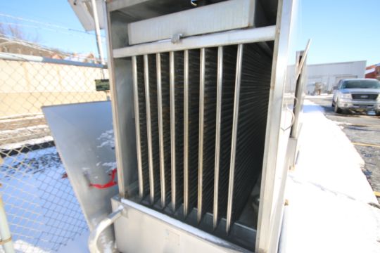 { Choice of lots: 110, 111 } } Chester Jensen S/S Falling Film Plate Chiller, B-8OT-8-32, S/N 9062-P, Ammonia Refrigerated, All S/S, (8) Plates (Overall Dimensions Aprox. 49" W x 7 ft. L x 83" H) (Formerly Used for Cooling HTST System) (Additional $200 Fee Applies For Packaging & Loading)