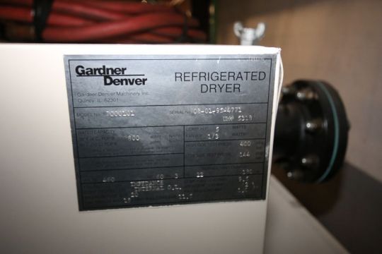 Gardner Denver Refrigerated Air Dryer, Model 7000101, S/N 8-01-95-4771, 800 scfm, 5 hp Comp., 1/3 hp Fan, R22 Refrigerant, 460 V, 3 Phase, 400 psig High Side and 144 psig Low Side (Additional $100 Fee Applies For Packaging & Loading)