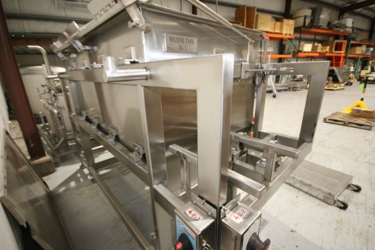 Aprox. 50 cubic ft. All S/S Paddle Blender with 316 S/S Interior and Exterior, Hinged Lids, 304 Paddle, Sterling 3 hp Drive Motor, 1760 RPM, 230/460 V, 3 Phase (Blender Interior Dimensions Aprox. 73" L x 54" Deep x 46" W) (Additional $200 Fee Applies For Packaging & Loading)