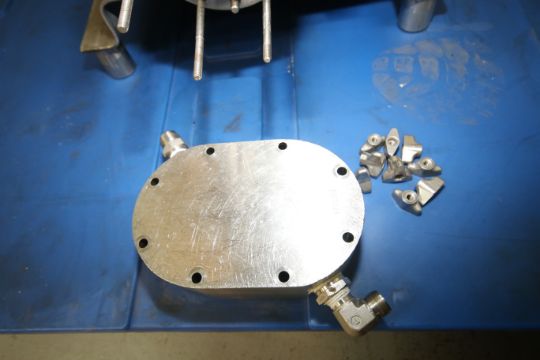 Waukesha Positive Displacement Pump, Model 15, S/N 123722 with 1-1/2" x 1-1/2" Clamp Type S/S Jacketed Head with Cooling Capabilities, Mobilgear 630 Gear Ratio 21.93, 213 - 1720 Gear, Sew-Eurodrive 2 hp Drive Motor, 218-1720 RPM, 460Y V, 3 Phase, Onboard VFD Controller, Mounted on S/S Frame (Additional $50 Fee Applies For Packaging & Loading)