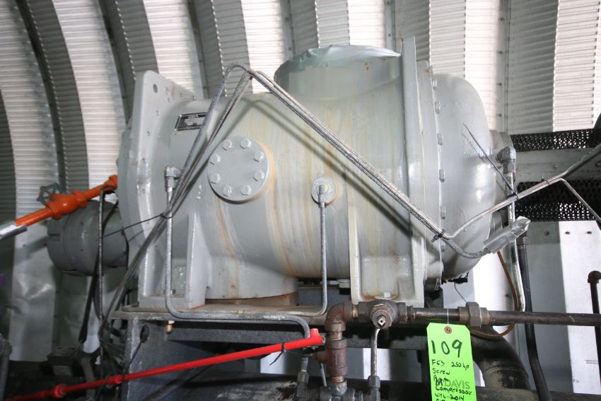 { Choice of lots: 108, 109 } } NEW Rebuilt Head 2014 FES 250 hp Screw Ammonia Compressor, Frame #920167, Board #5840 with GEA Screw, Model 650, S/N 002 - Rebuilt #13159, Ram 3565 RPM Motor, 230/460 V, 3 Phase, FES MicroMaster Touchpad Display and Onboard Viking 5 hp Pump (Overall Dimensions Aprox. 13 ft. L x 51" W x 93" H) (Additional $750 Fee Applies For Packaging & Loading)