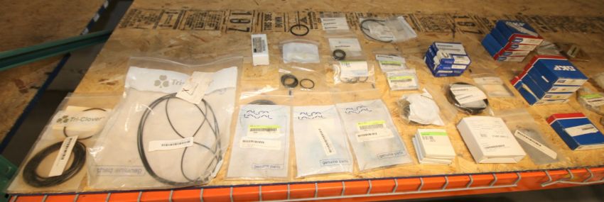 Tri-Clover Positive Displacement Pump Parts for Models PR60 & PRE125 , Includes (2) Shafts, PN R60E-2-06-316L & R60E-2-12-316L, (2) Main Gears PN R60-2-94A, Seal Kit PN PRED60/PRE125-1U, SKF Bearings includes (1) PN 6309, (4) PN 6309 JEM, (4) PN 402576, (2) Outboard Bearings PN R60-2-37-CS, Ring PN R60E-2-80-1-S, (2) Collars PN R60E-2-80-1-316L with Assorted Seals & Gasket (Rigging/Loading Fee: $50. Additional Packaging Fees May Apply)