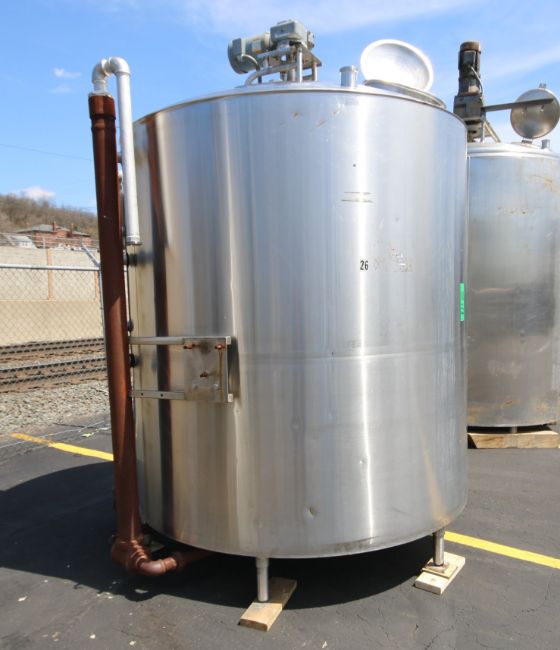 Girton 1,500 Gal. Dome Top S/S Processor, Model PW-P-1500, S/N 72090504 with Bottom Sweep Agitator with 2 hp / 1725 RPM, Dual Sprayball, Baffle, Top Mounted Man Door, S/S Bottom, WP 100 psi Jacket, 208/230/480V 3 Phase, (Aprox. Overall Diam. 128" H x 88" W) (Rigging/Loading Fee: $1,500. Additional Packaging Fees May Apply)