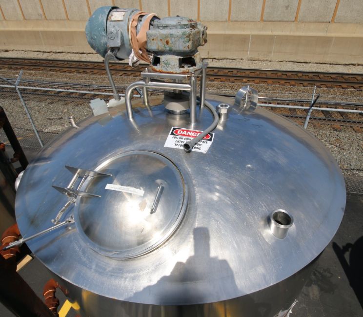 Girton 1,500 Gal. Dome Top S/S Processor, Model PW-P-1500, S/N 69110613 with Bottom Sweep Agitator with 1.5 hp / 3/4 hp / 1220/600 RPM, Dual Sprayball, Baffle, Top Mounted Man Door, S/S Bottom, 230V 3 Phase, (Aprox. Overall Diam. 135" H x 88" W) (Rigging/Loading Fee: $1,500. Additional Packaging Fees May Apply)