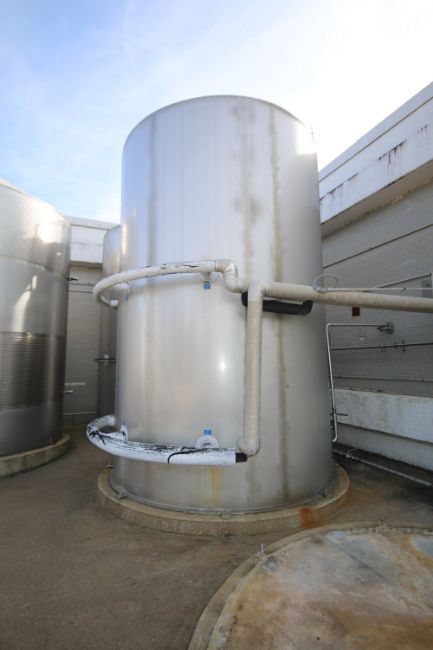 Mueller 7,500 Gal. Jacketed S/S Silo, Model SVW, S/N F-32017-2, S/S Exterior with Sugar UV Meter, Overall Dims.: 10’10” Dia. x 16’ H (NOTE: Formerly Sugar Tank)