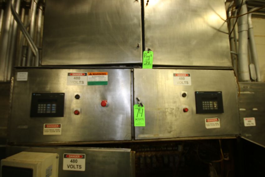 (2) S/S Control Panels includes (1) Panel for Solenoid Controls and (1) Panel with (2) Allen Bradley Redi Panel Touchpad Display, Brookfield Touchpad Display, (4) VFD's - (1) Fuji AF 300 G11, (2) Allen Bradley and (1) Woods E-Trac and Relays (NOTE: Does Not Include Wiring or Conduit Outside Panel)